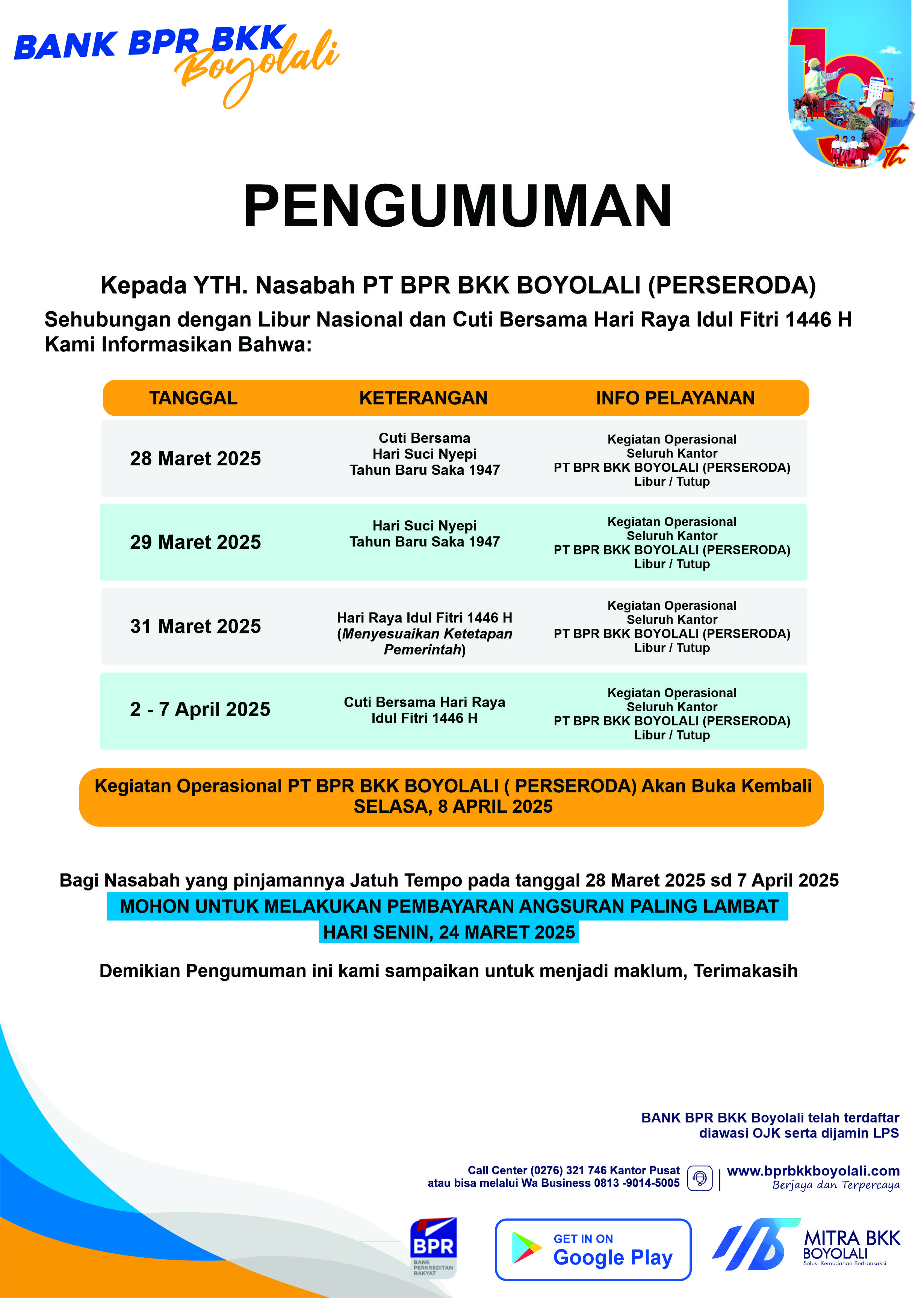 PENGUMUMAN ADMINISTRASI PENERIMAAN CALON ANGGOTA KOMISARIS PT BPR BKK BOYOLALI (PERSERODA)